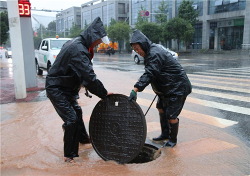 2019年8月21日至22日,我市市區(qū)普降暴雨,雨城區(qū)最高降雨量達(dá)161.6毫米,連續(xù)強(qiáng)降雨導(dǎo)致北外環(huán)路、蒼坪山農(nóng)貿(mào)市場(chǎng)、金安片區(qū)、大興防洪溝等多地嚴(yán)重積水。城投市政公司第一時(shí)間啟動(dòng)應(yīng)急預(yù)案,公司領(lǐng)導(dǎo)及防汛搶險(xiǎn)分隊(duì)賡即趕赴災(zāi)情現(xiàn)場(chǎng)開展搶險(xiǎn)工作。