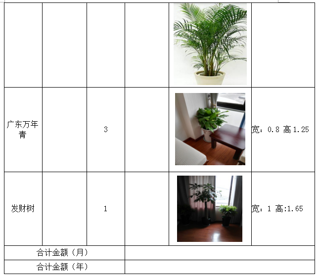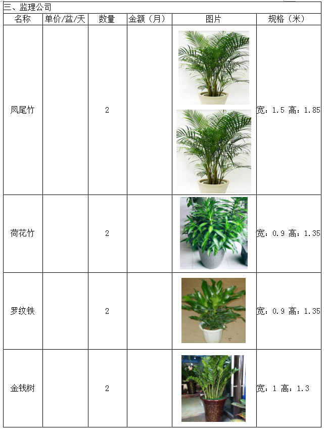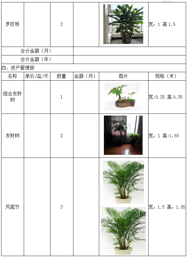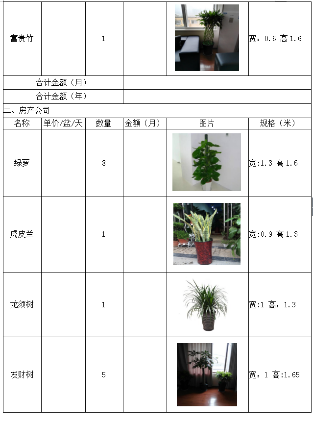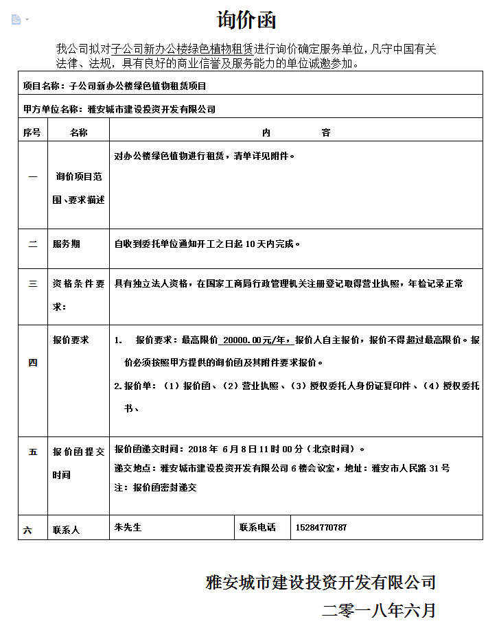 城投公司下屬子公司新辦公樓綠色植物租賃詢價函