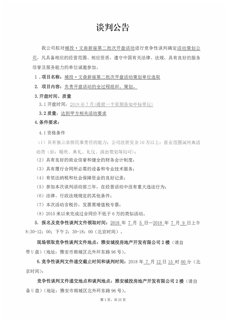 城投·文曲新座第二批次開盤活動(dòng)競(jìng)爭(zhēng)性談判