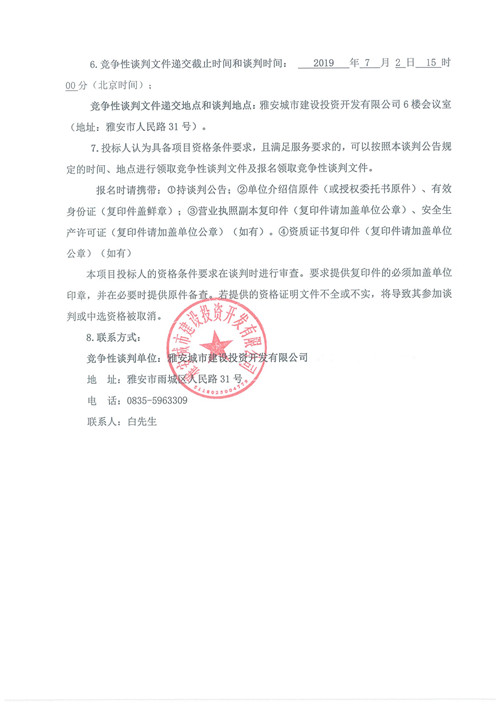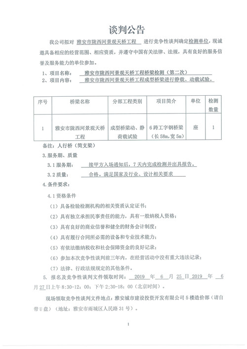 雅安市隴西河景觀天橋工程檢測競爭性談判公告(第二次)