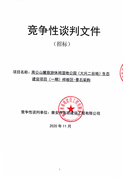 市政公司周公山麓旅游休閑濕地公園(大興二臺地)生態(tài)建設項目(一期)樣板區(qū)-景石采購競爭性談判