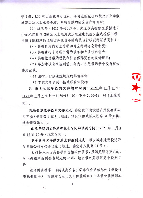 羅家灣電站2#水輪發(fā)電機(jī)組A級檢修工程談判公告