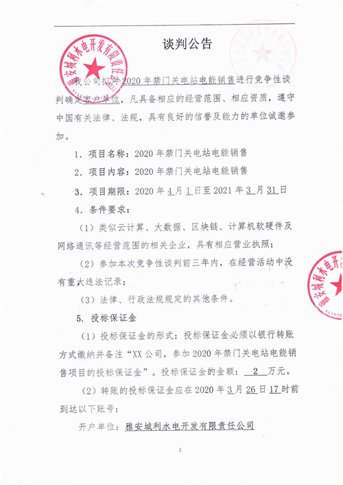 城利水電公司2020年禁門(mén)關(guān)電站電能銷(xiāo)售競(jìng)爭(zhēng)性談判公告