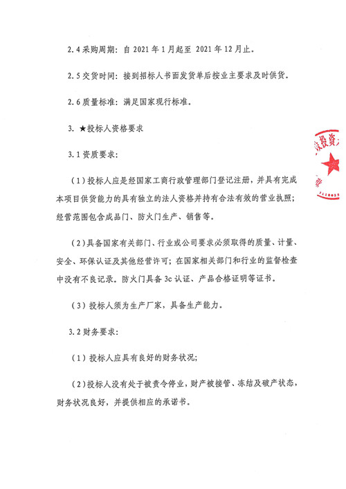 2021年1月-2021年12月雅安城市建設(shè)投資開發(fā)有限公司成品門、防火門集中采購(第二次)競爭磋商公告