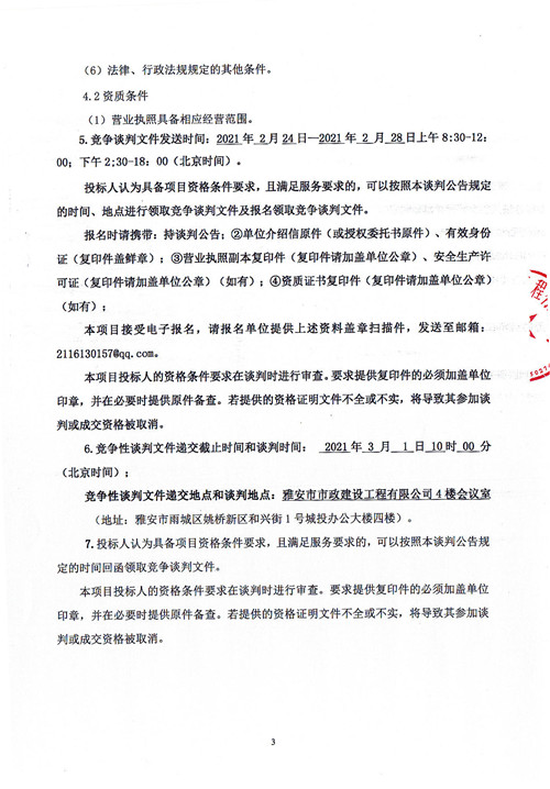 市政公司雨城大道一、二標(biāo)段透水磚采購競爭性談判公告
