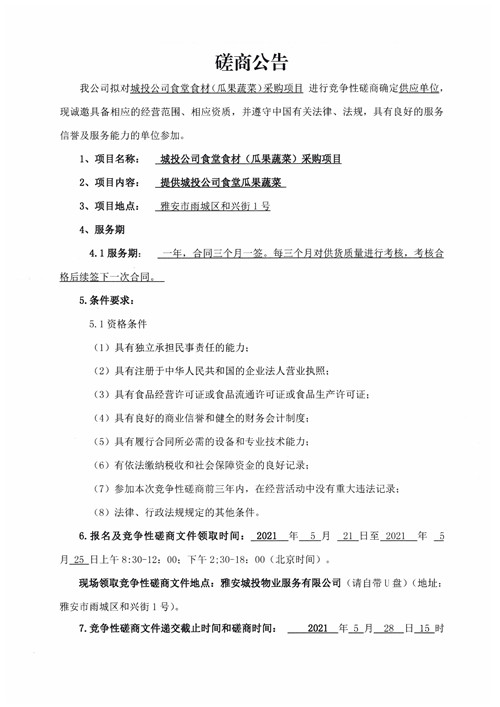 城投物業(yè)關(guān)于城投公司食堂食材(瓜果蔬菜)采購(gòu)項(xiàng)目競(jìng)爭(zhēng)性磋商公告