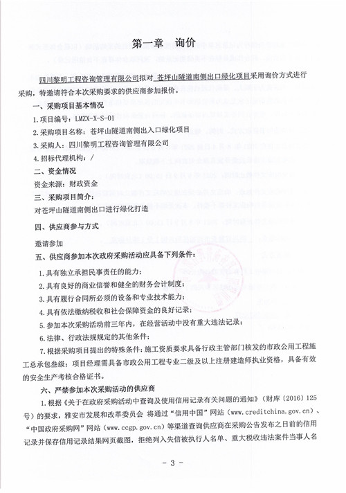 黎明咨詢公司蒼坪山隧道南側(cè)出口綠化項(xiàng)目詢價(jià)函