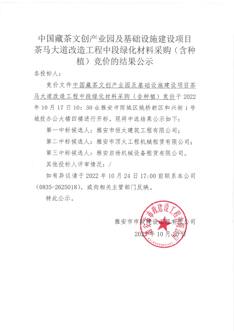 中國(guó)藏茶文創(chuàng)產(chǎn)業(yè)園及基礎(chǔ)設(shè)施建設(shè)項(xiàng)目--茶馬大道改造工程中段綠化材料采購(gòu)(含種植)競(jìng)價(jià)的結(jié)果公示