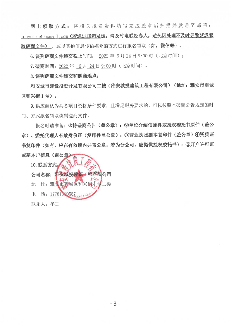 雅安城投建筑工程有限公司打包箱房安裝采購談判磋商公告