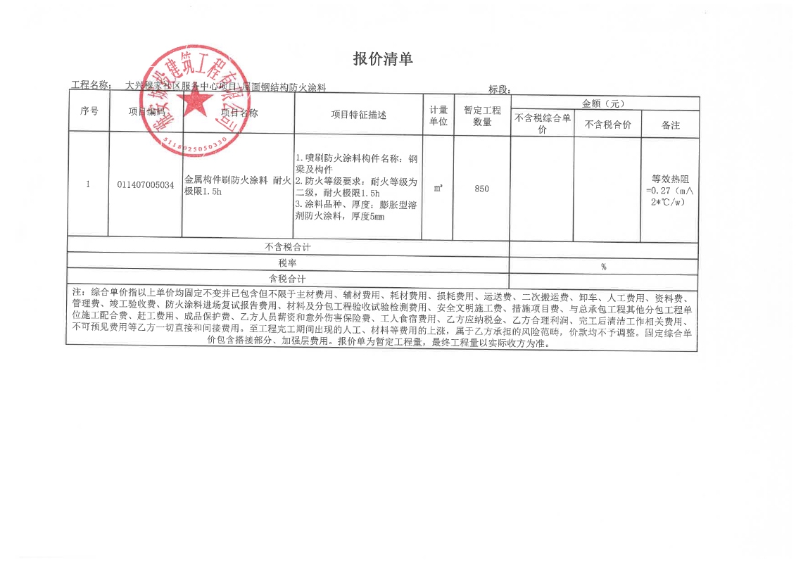 大興穆家社區(qū)服務(wù)中心項(xiàng)目屋頂鋼結(jié)構(gòu)防火涂料競價(jià)公告