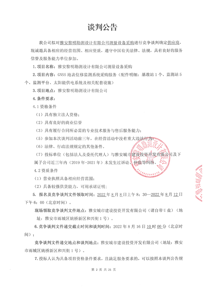 雅安黎明勘測(cè)設(shè)計(jì)有限公司測(cè)量設(shè)備采購競(jìng)爭(zhēng)談判文件