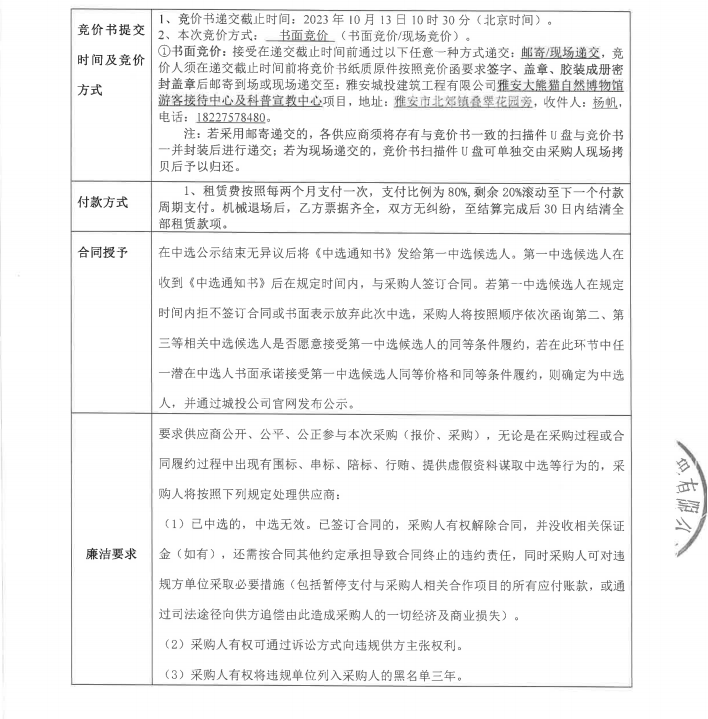 雅安大熊貓自然博物館游客接待中心及科普宣教中心項(xiàng)目吊籃租賃采購(gòu)競(jìng)價(jià)公告