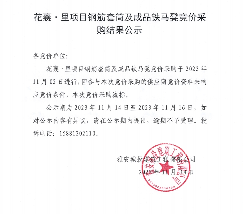 花襄·里鋼筋套筒及成品鐵馬凳競(jìng)價(jià)采購結(jié)果公示