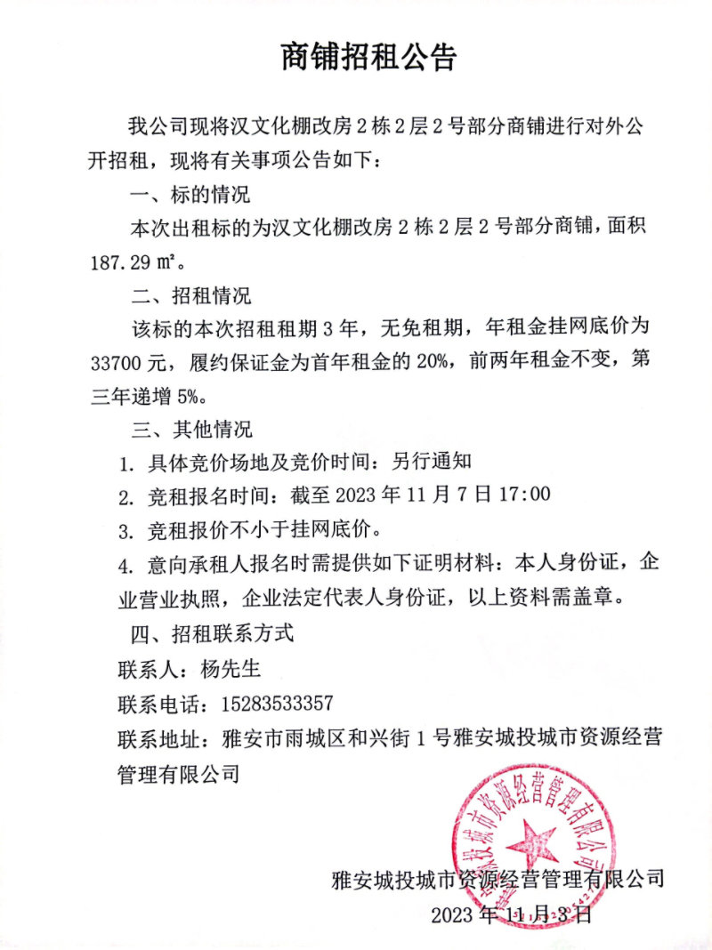 漢文化棚改房2棟2層2號(hào)部分商鋪招租公告