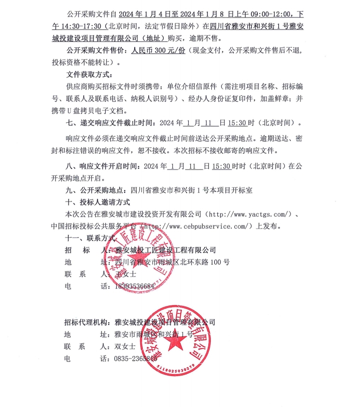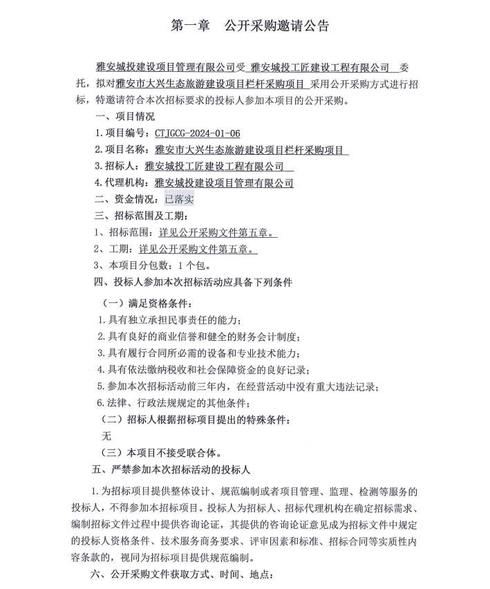 雅安市大興生態(tài)旅游建設(shè)項(xiàng)目欄桿采購項(xiàng)目公開采購邀請(qǐng)公告