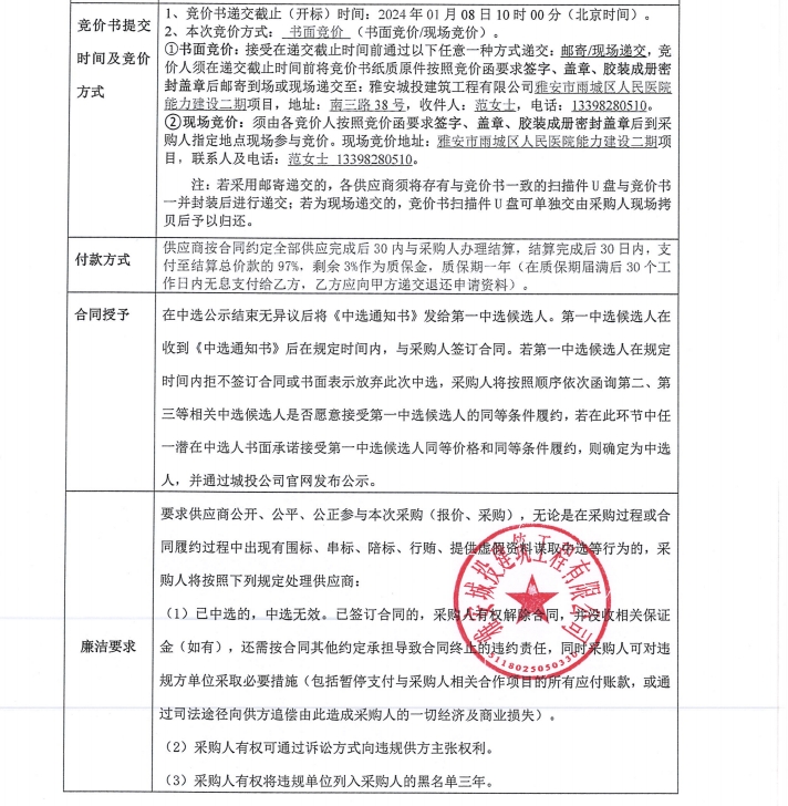 雅安市雨城區(qū)人民醫(yī)院能力建設二期項目警務室、崗亭采購競價公告