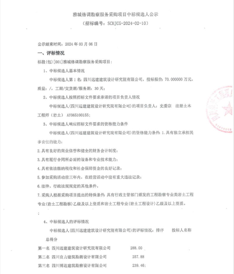 雅城格調(diào)堪察服務(wù)采購項(xiàng)目中標(biāo)候選人公示