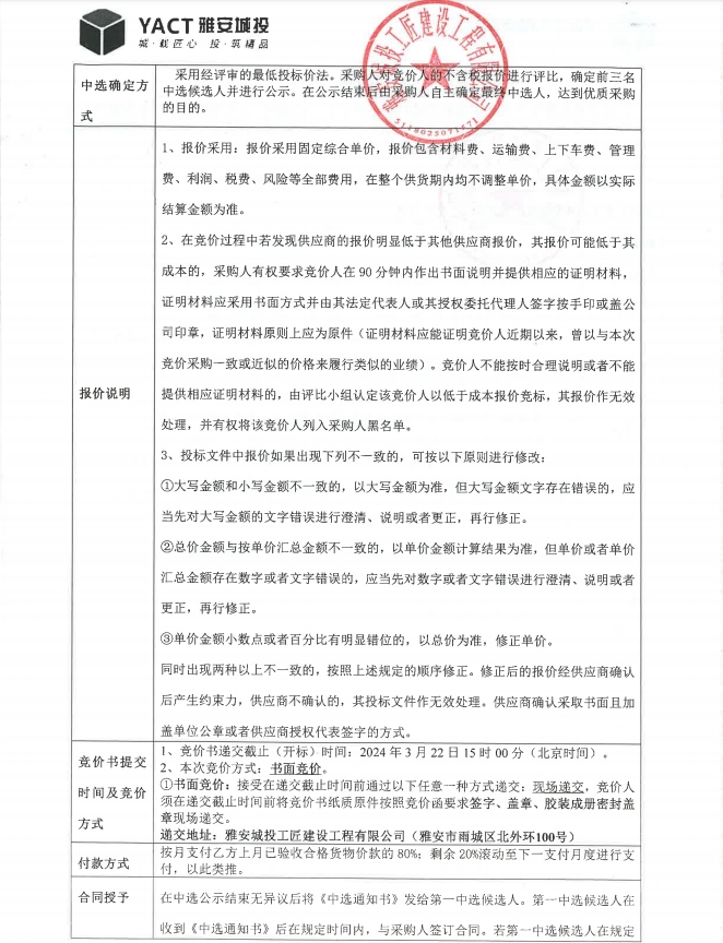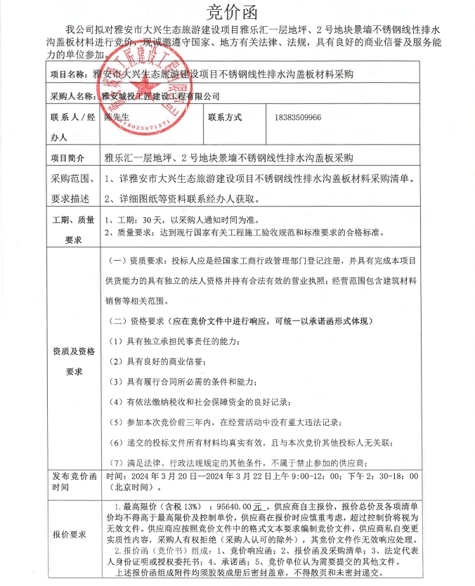 雅安市大興生態(tài)旅游建設(shè)項(xiàng)目不銹鋼線性排水溝蓋板材料采購競價(jià)公告