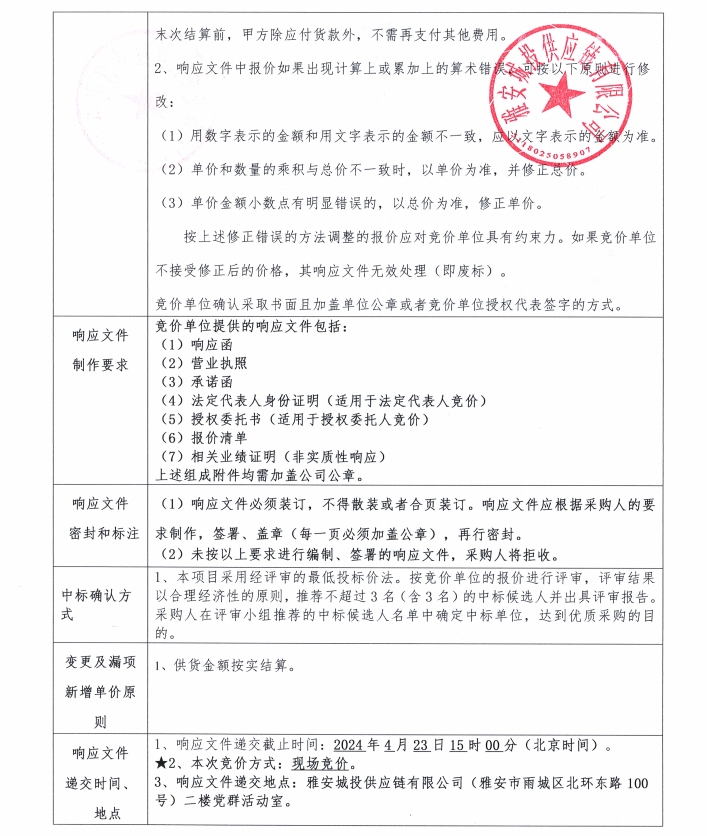 響應(yīng)文件格式(競(jìng)價(jià))