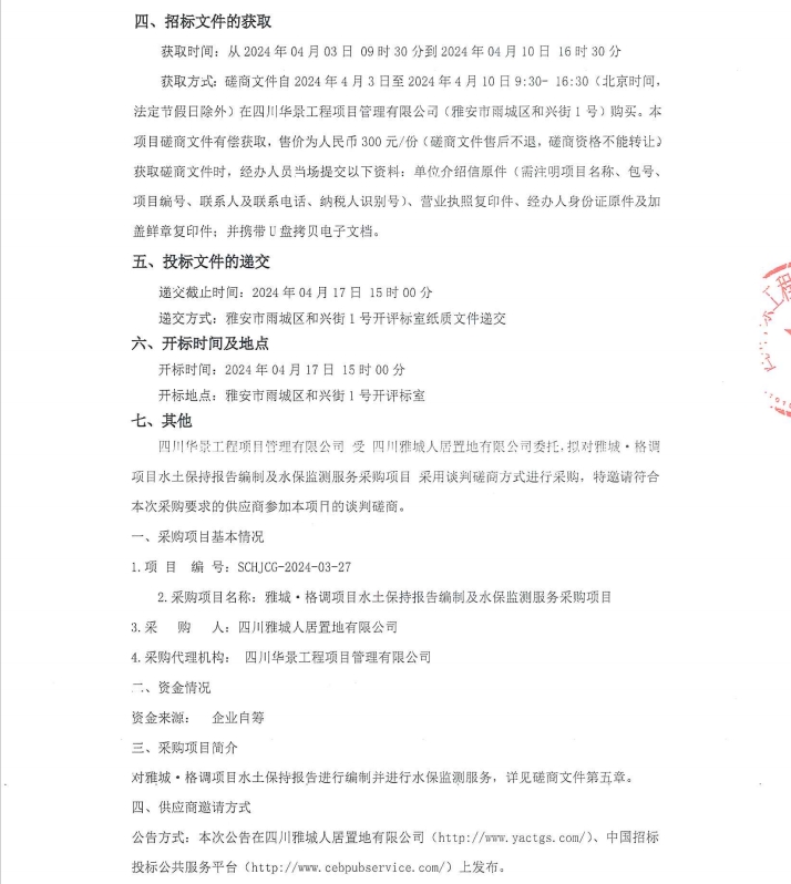 雅城·格調(diào)項(xiàng)目水土保持報(bào)告編制及水保監(jiān)測(cè)服務(wù)采購(gòu)項(xiàng)目競(jìng)爭(zhēng)性磋商公告
