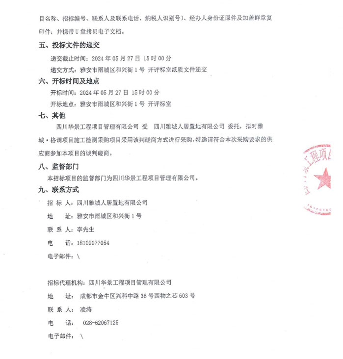 雅城·格調(diào)項目施工檢測采購項目公告
