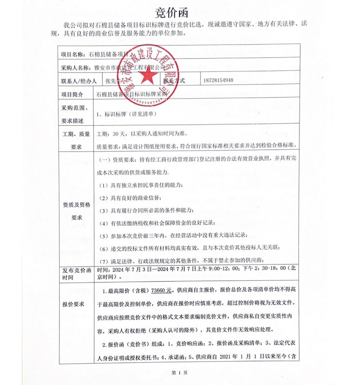石棉縣儲備項目標(biāo)識標(biāo)牌競價公告
