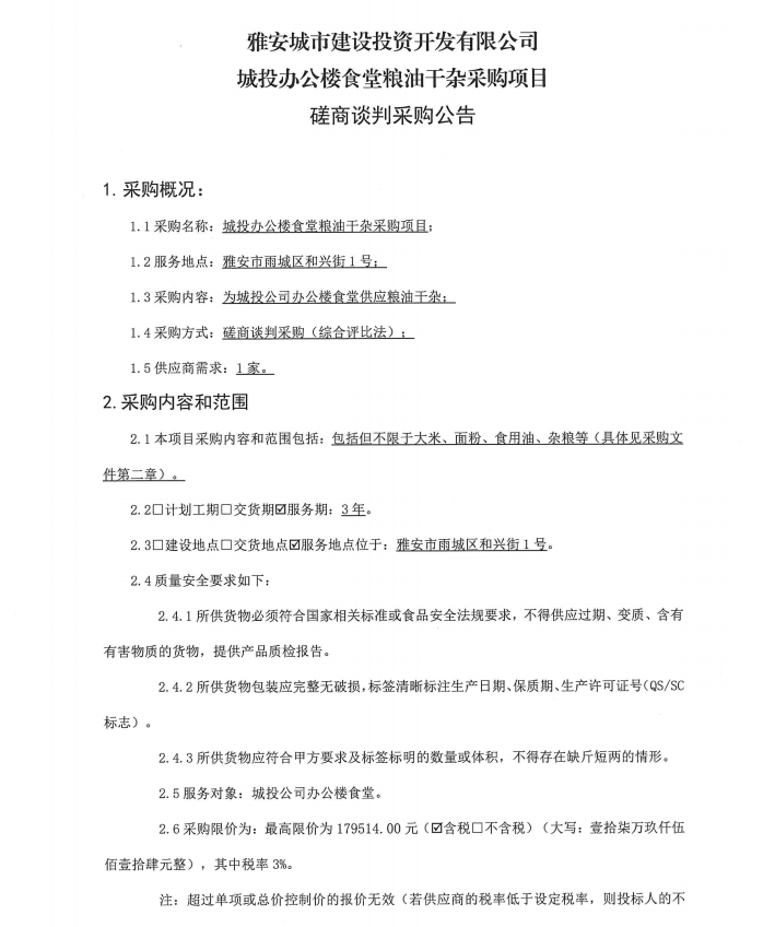附件:城投辦公樓食堂糧油干雜采購(gòu)項(xiàng)目磋商談判采購(gòu)公告