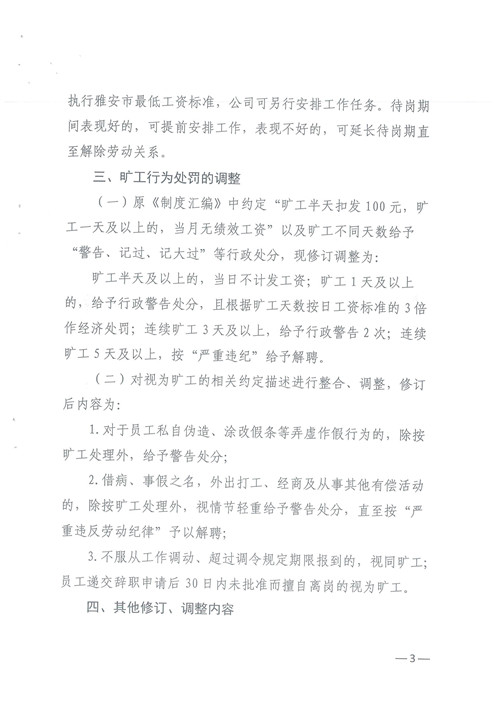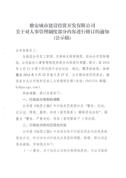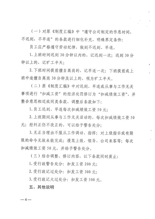 關于對人事管理制度部分內容進行修訂的通知