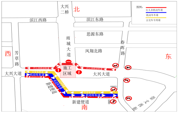 斷道期間封閉段禁止所有機(jī)動(dòng)車通行、非機(jī)動(dòng)車、行人通行(公交車不受影響)。